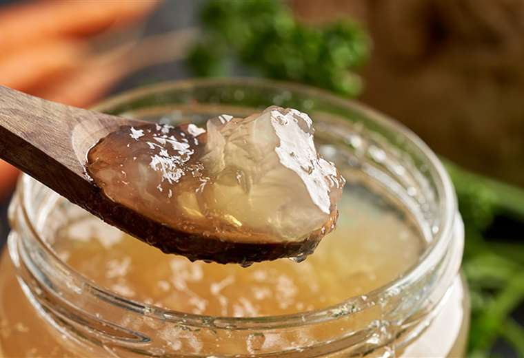 Otra de las opciones es la gelatina de hueso, que obtiene este nombre debido a que se prepara al cocinar huesos de animales por varias horas. La técnica de preparación permite extraer el colágeno y minerales, lo que refuerza los beneficios para huesos y articulaciones.