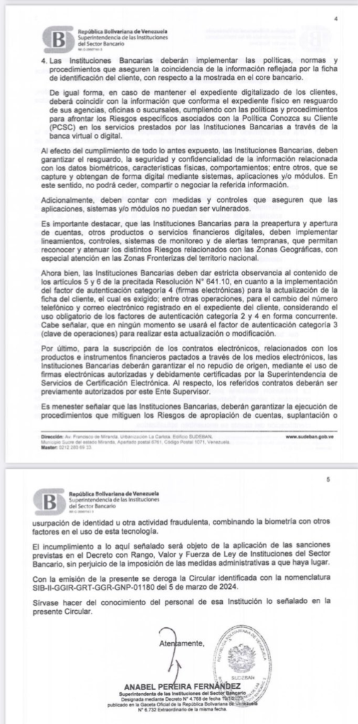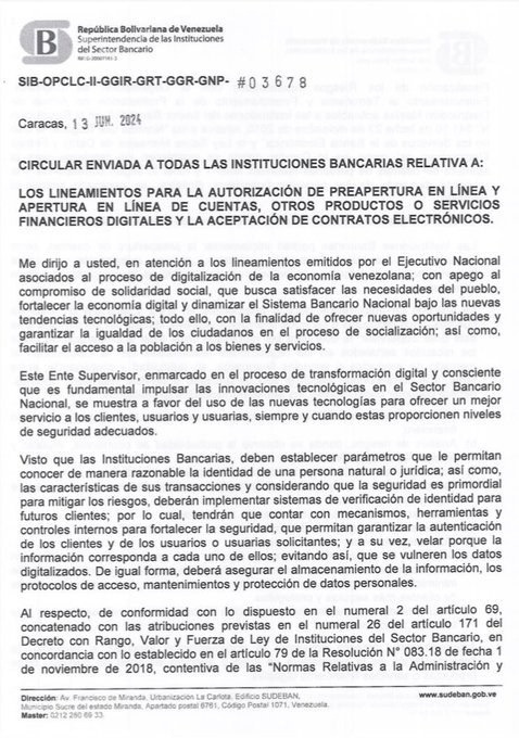 La Superintendencia de Instituciones del Sector Bancario (Sudeban) emitió una circular donde establece el procedimiento para la preapertura y apertura de cuentas, además de otros productos y servicios financieros digitales, así como la aceptación de contratos electrónicos.