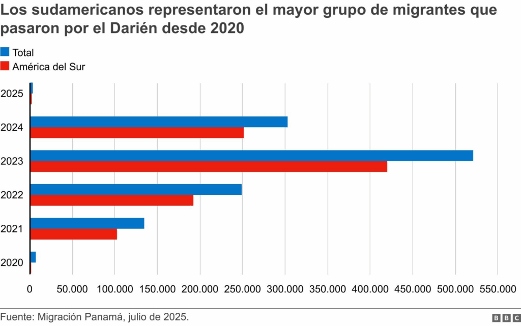 Según un reportaje de la cadena BBC Mundo, cientos de migrantes perdieron la vida en las peligrosas rutas que atraviesan esta región de Panamá que hace frontera con Colombia, que tan solo entre 2022 y 2024 casi un millón de hombres, mujeres y niños cruzaron a pie en su intento por llegar a Estados Unidos.