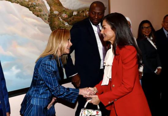 En la ceremonia, la reina comparte el escenario con importantes figuras, como el Papa León XIV, la presidenta del Consejo de Ministros de Italia, Giorgia Meloni, y el rey de Lesotho. A su llegada, el Santo Padre recibe una cálida ovación y se dirige al público con un discurso de bienvenida en español.