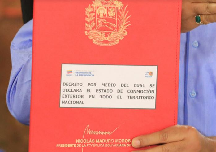 “El Presidente suscribió el decreto de conmoción externa”, indicó Rodríguez en un acto en Caracas con el cuerpo diplomático acreditado en el país. El decreto permite a Maduro “actuar en materia de defensa y seguridad y defender a Venezuela” si Estados Unidos “se llega a atrever a agredir a nuestra patria”, agregó.