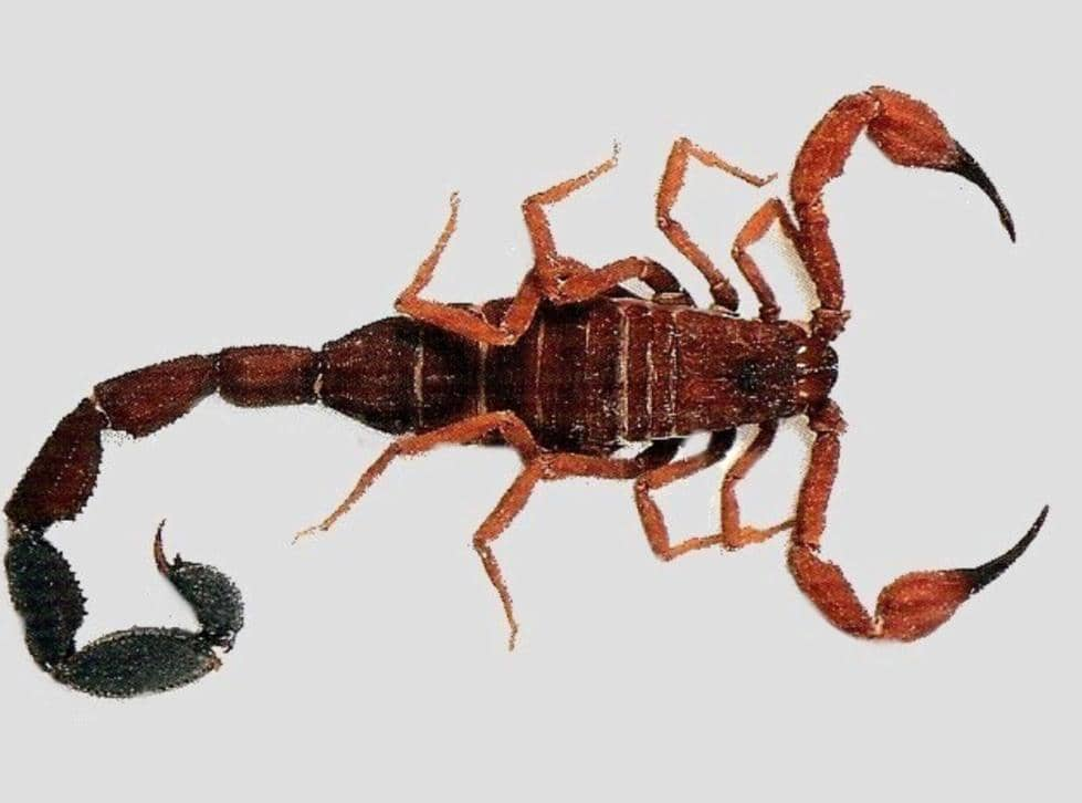 "El escorpión Tityus D", agrega, "muy peligroso, tiene su distribución endémica en Venezuela y Colombia, con un tamaño de 15 centímetros, aproximadamente, de color marrón oscuro con rayas amarillas y anaranjadas.