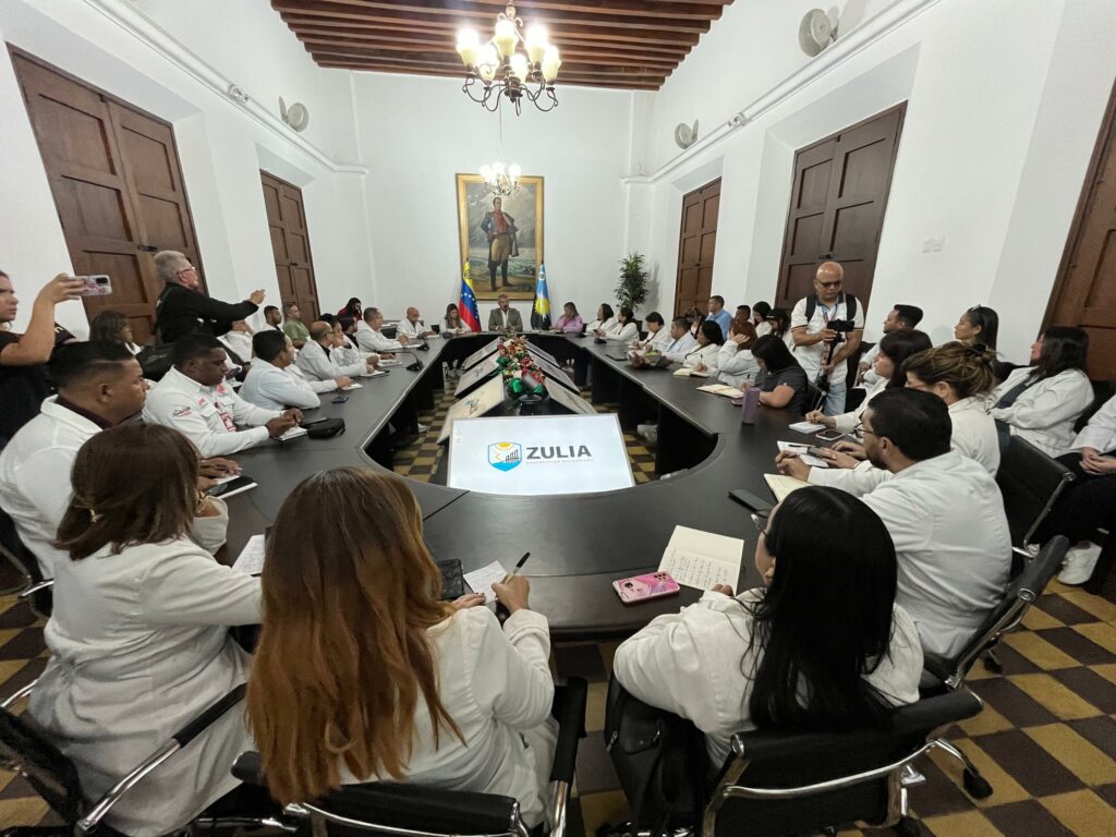 El primer mandatario regional expresó además que continuará la rehabilitación de consultorios mediante la inversión de las comunas, la red de atención primaria comunal y la red especilizada para ambulatorios y hospitales. Acotó que este encuentro en el Palacio de los Cóndores fue para consolidar la ruta materno infantil, oncológica, la de diálisis, pasivos quirúgicos, la ruta hospitalaria y garantizar la atención alimentaria de los pacientes y la seguridad en todos los hospitales del Zulia.