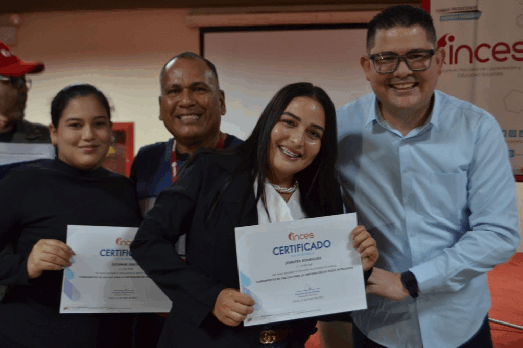 Este viernes 6 de junio, Inces Zulia, entregó 746 certificados a la clase obrera que participa en las diferentes formaciones que ofrece la institución de capacitación, iniciando con la certificación de los trabajadores de PDVSA, en las áreas formativas de Encuellador de Servicios de Pozos Petroleros y de Soldador (a).