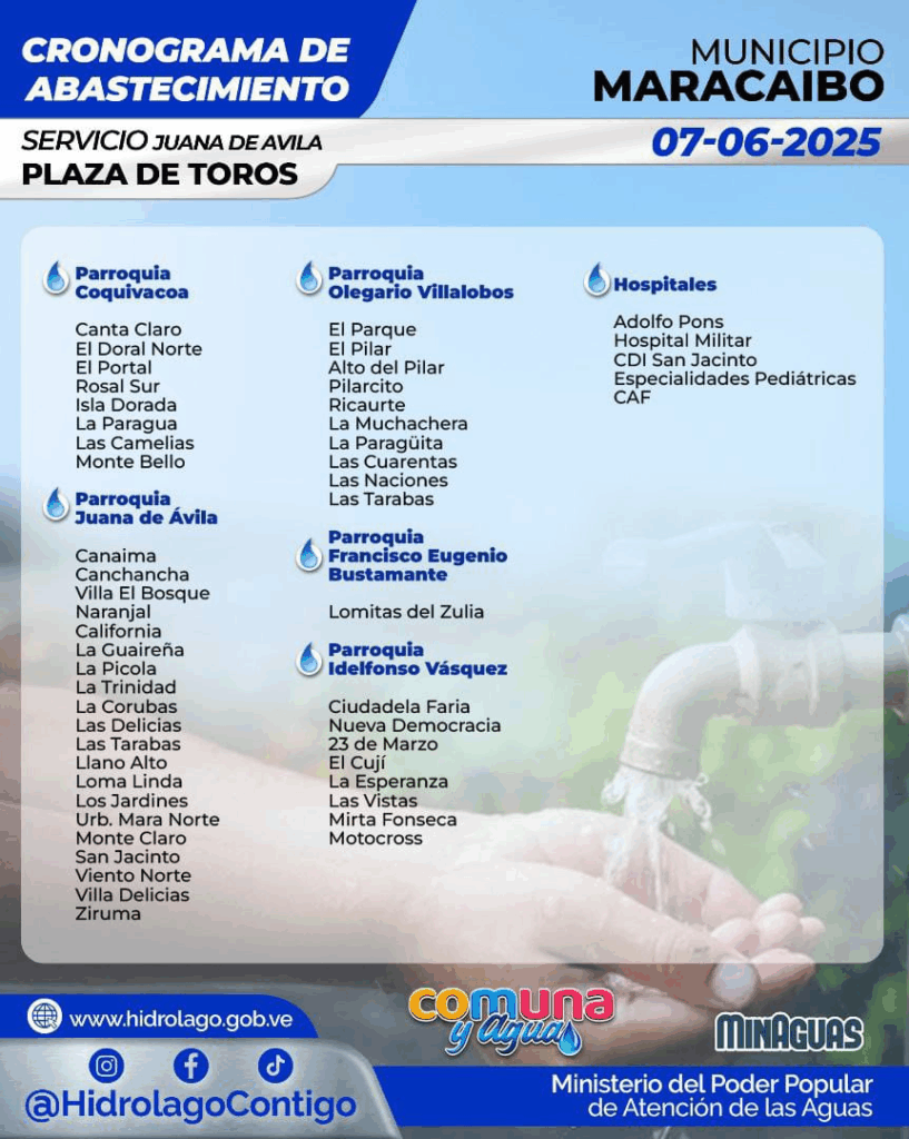 Este sábado, 7 de junio, la Hidrológica del Lago de Maracaibo (Hidrolago), activó el Servicio para el municipio de Maracaibo y así atender la demanda de agua en cinco parroquias.