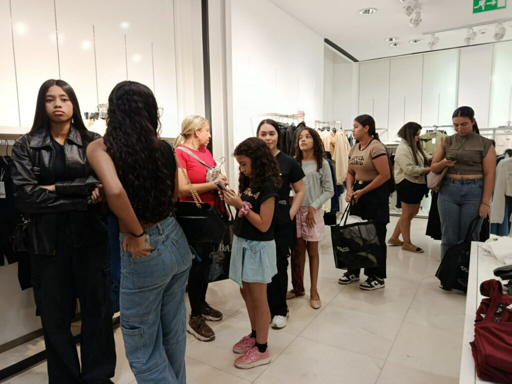 Filas en los probadores y cajas para pagar se encontraban presentes en la mayoría de tiendas, mientras que los pasillos, que incluso a altas horas de la noche se encontraban llenos de personas, portaban pilas de bolsas de los distintos productos.