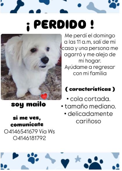 Mailo, un querido perrito de la familia, se perdió el pasado domingo del sector Panamericano del municipio Maracaibo y su dueño está desesperado por traerlo de vuelta a casa. Salió de su hogar y no ha regresado desde entonces.