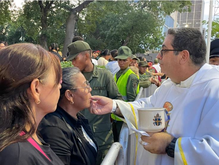 El acto religioso inició en presencia de las primeras autoridades de la región, entre las que destaca el gobernador del Zulia, Luis Caldera, la primera dama del estado, Roselyn López de Caldera, el alcalde de Maracaibo, Gian Carlo Di Martino, la primera dama de la ciudad, Ana Clara de Di Martino.