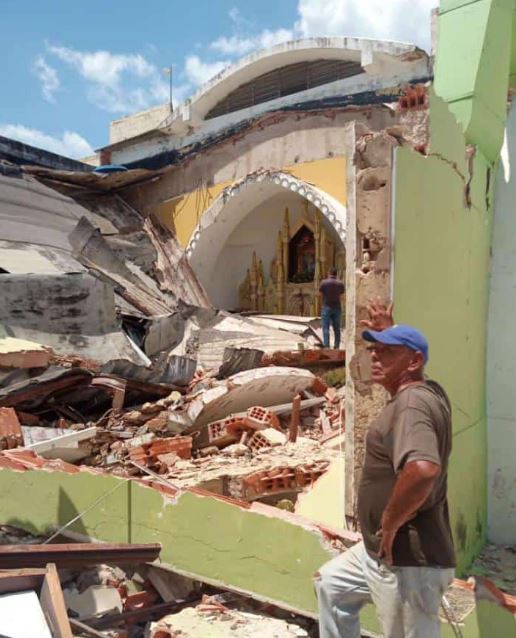 En la tarde de este jueves, 17 de agosto, se derrumbó gran parte de la arquitectura de la Iglesia de la Virgen del Rosario de Aránzazu, ubicado en el municipio Santa Rita del estado Zulia.