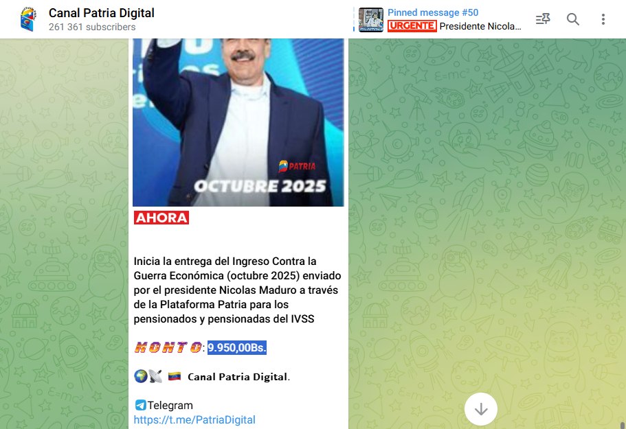 La plataforma Patria inició el pago del bono Ingreso Contra la Guerra Económica, para los pensionados del Instituto Venezolano de los Seguros Sociales (IVSS), este miércoles 22 de octubre.