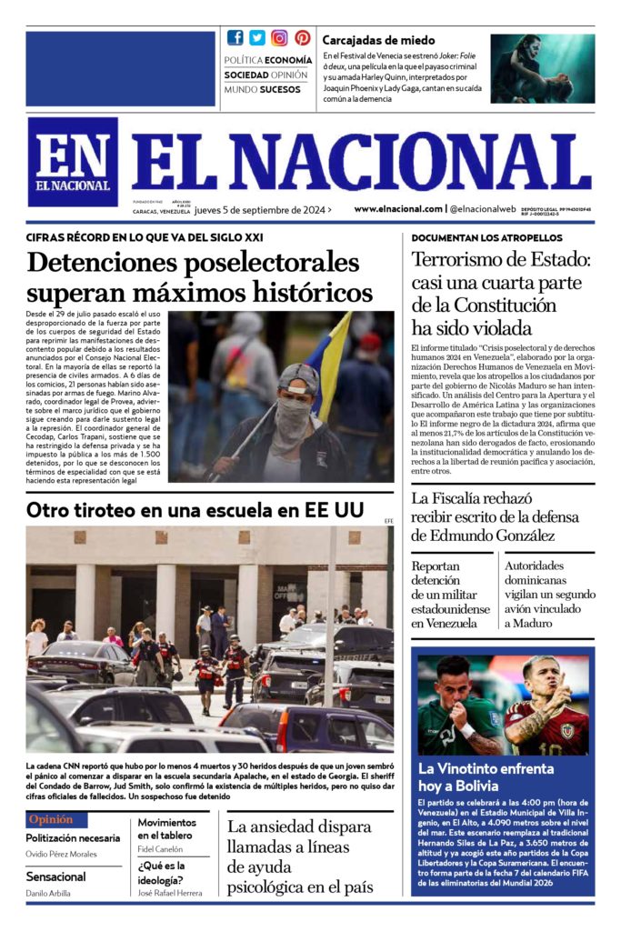 Noticia al Día trae para ti los titulares de la prensa nacional correspondiente a este jueves 5 de septiembre de 2024.