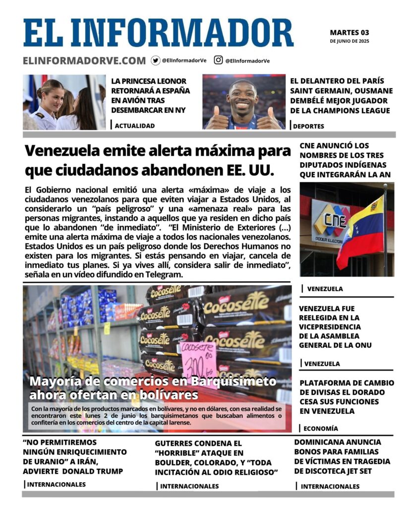 Noticia al Día trae para ti los titulares de la prensa nacional correspondiente a este martes 3 de junio de 2025.