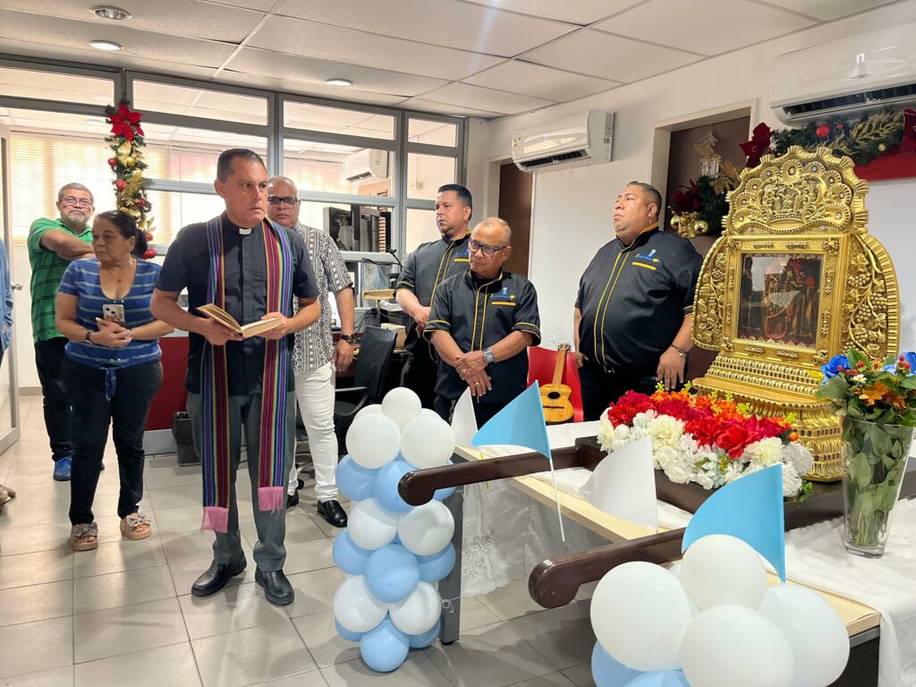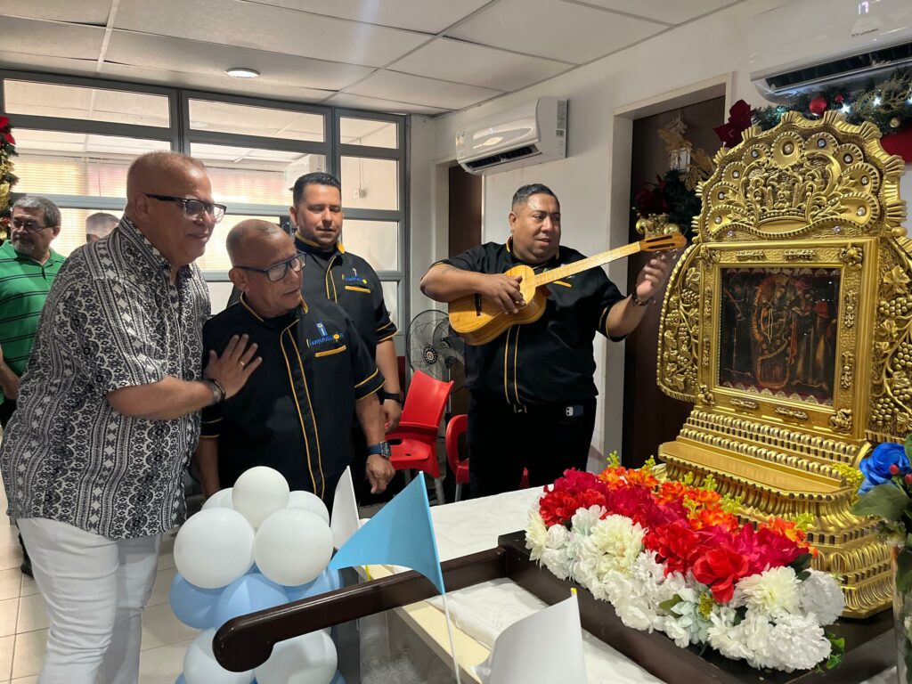 Gaiteros de las agrupaciones Iluminación, Gaita y Show y de Zagales del Padre Vílchez, le rindieron tributo a la Virgen Morena con un hermoso potpurrí de canciones. El ambiente de nuestra redacción se llenó de alegría y cierta nostalgia con la inmaculada imagen, invitándonos a la reconciliación y a la unión familiar. El presbítero, Alfonso Rodríguez, párroco de la iglesia Santo Cristo de Aranza y Nuestra Señora de la Medalla Milagrosa, fue el encargado de ofrecer una breve pero sentida eucaristía.