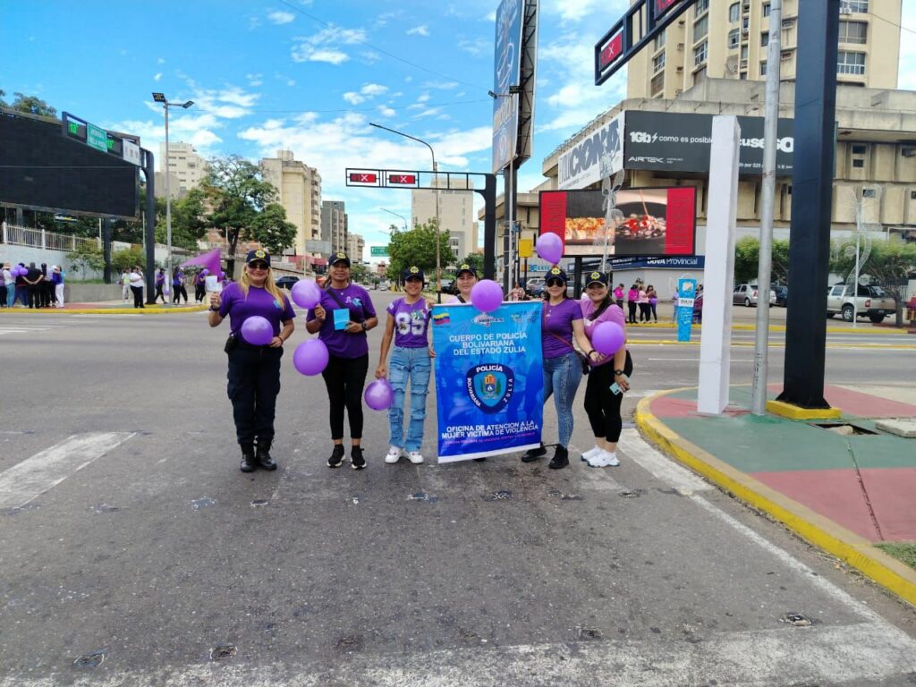Oficiales del Cuerpo de Policía Bolivariana del estado Zulia (Cpbez), durante este mes de noviembre, realizan despliegues por los 21 municipios del estado Zulia, con una campaña con el objetivo de erradicar la Violencia de Género, en el marco del Día Internacional de la “No Violencia contra la Mujer”.